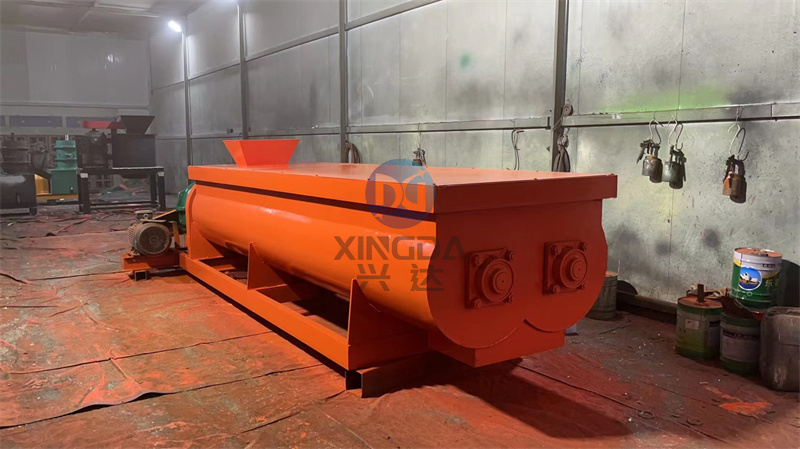 正在進(jìn)行噴漆工作的攪拌設(shè)備雙軸攪拌機(jī)馬上制作完成:雙軸攪拌機(jī)是整套有機(jī)肥生產(chǎn)線中的一款有機(jī)肥攪拌設(shè)備。在有機(jī)肥生產(chǎn)線中擔(dān)當(dāng)起到攪拌物料的作用。雙軸攪拌機(jī)利用兩根呈對(duì)稱狀的螺旋軸的同步旋轉(zhuǎn),雙軸攪拌機(jī)內(nèi)裝有旋轉(zhuǎn)反向的漿葉,漿葉成一定角度將物料沿軸向、徑向循環(huán)翻攪,使物料迅速混合均勻。由電機(jī)
