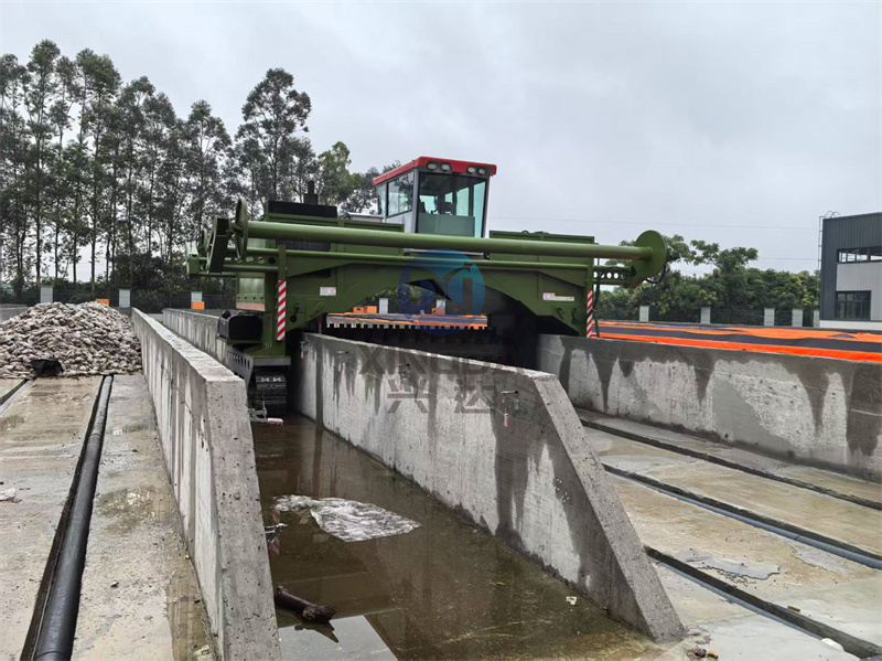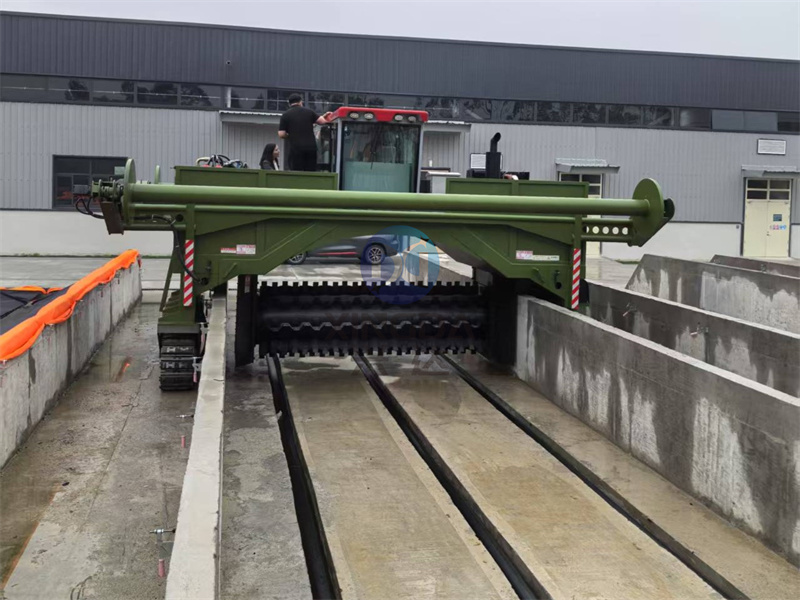 泉州客戶5米寬的液壓履帶覆膜翻拋機安裝完成后的試機現場: