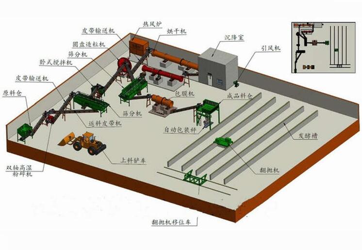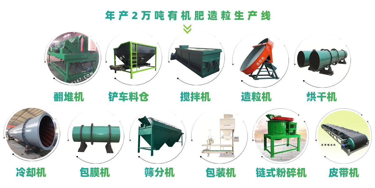 在本生產(chǎn)線里我配備的粉碎機(jī)是半濕物料粉碎機(jī)主要用于水分在25—30%的雞糞,牛糞,豬糞,羊糞,以及其他物有機(jī)物料的粉碎效果極佳,設(shè)備配置里邊造粒機(jī)我?guī)湍渲昧诵滦陀袡C(jī)肥造粒機(jī),主要適用于畜禽糞便、酒糟、藥渣、沼渣、木粉等含有纖維素的有機(jī)物料,可以直接造粒,成球率高,顆粒強(qiáng)度好,節(jié)省烘干成本,生產(chǎn)過程中主機(jī)不需要專人操作。將發(fā)酵后的物料進(jìn)入粉碎機(jī)打成粉狀后;將物料輸送至攪拌機(jī)均勻攪拌;攪拌均勻后通過輸送機(jī)進(jìn)入造粒機(jī)造粒,造出來的顆粒因?yàn)樗直容^大需要進(jìn)入烘干機(jī)去除水分;顆粒從烘干機(jī)出來以后溫度高,由于烘干產(chǎn)生的冷凝水附著在顆粒表層,不易包裝,容易結(jié)塊,所以要經(jīng)過冷卻機(jī)利用加快空氣回流的原理使顆粒表層溫度降低,將冷凝水變成蒸汽揮發(fā),這一道工藝可以大大促進(jìn)肥料的保存效果,增長保存周期;冷卻之后的顆粒還存在大小不一的情況,要經(jīng)過篩選機(jī),把不符合標(biāo)準(zhǔn)的要經(jīng)過篩選機(jī)廢料出口粉碎之后重新進(jìn)入造粒機(jī)再次造粒,符合標(biāo)準(zhǔn)的顆粒就可以直接打包銷售了。